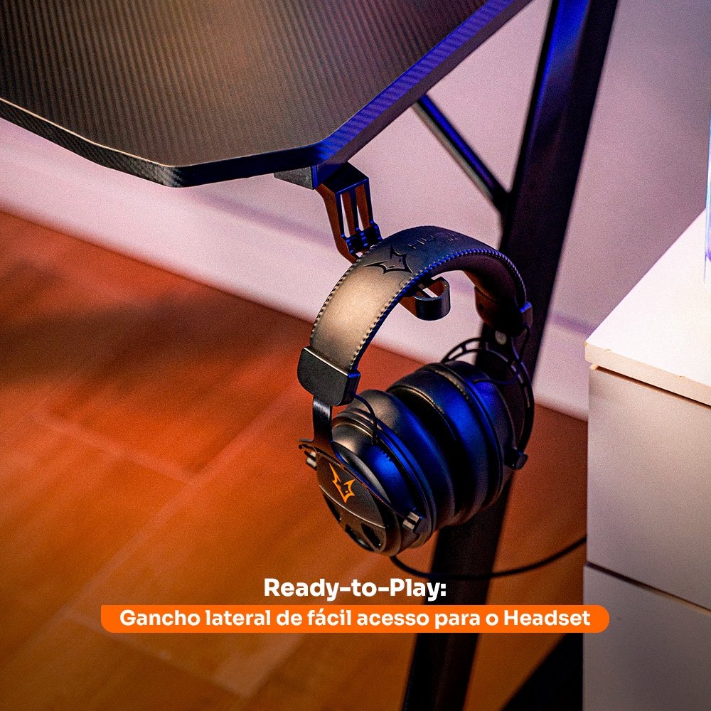 Mantenha seu espaço organizado com o gancho para headset e o suporte para copo. Tenha tudo ao alcance das mãos e livre de bagunça para focar totalmente no jogo.