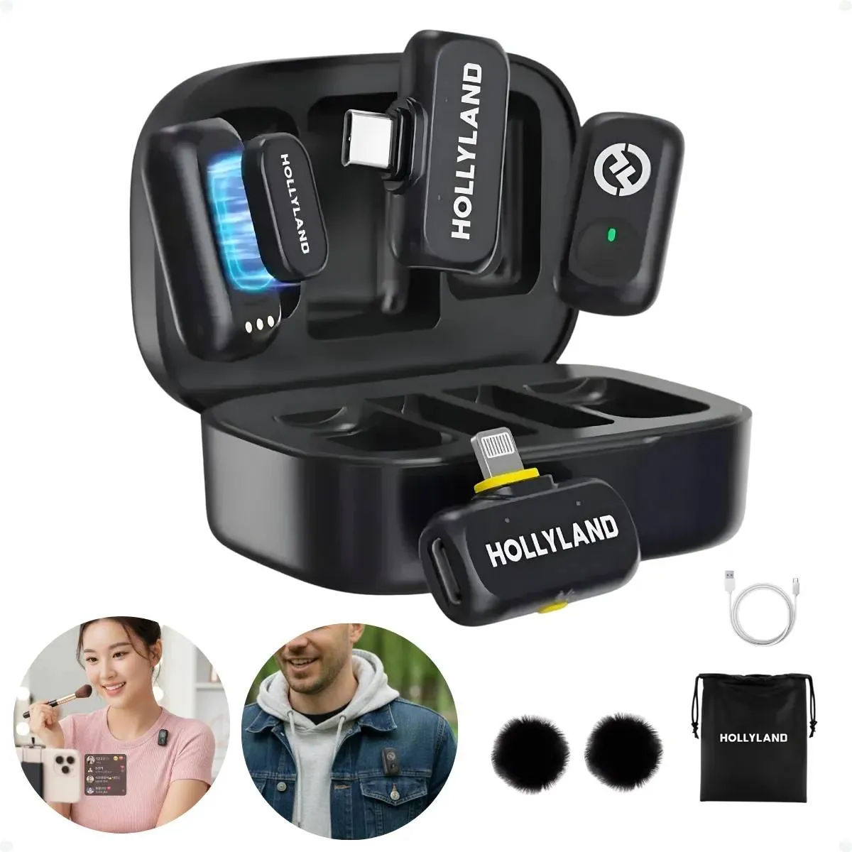 Microfone sem fio Hollyland Lark A1 Combo cor preto