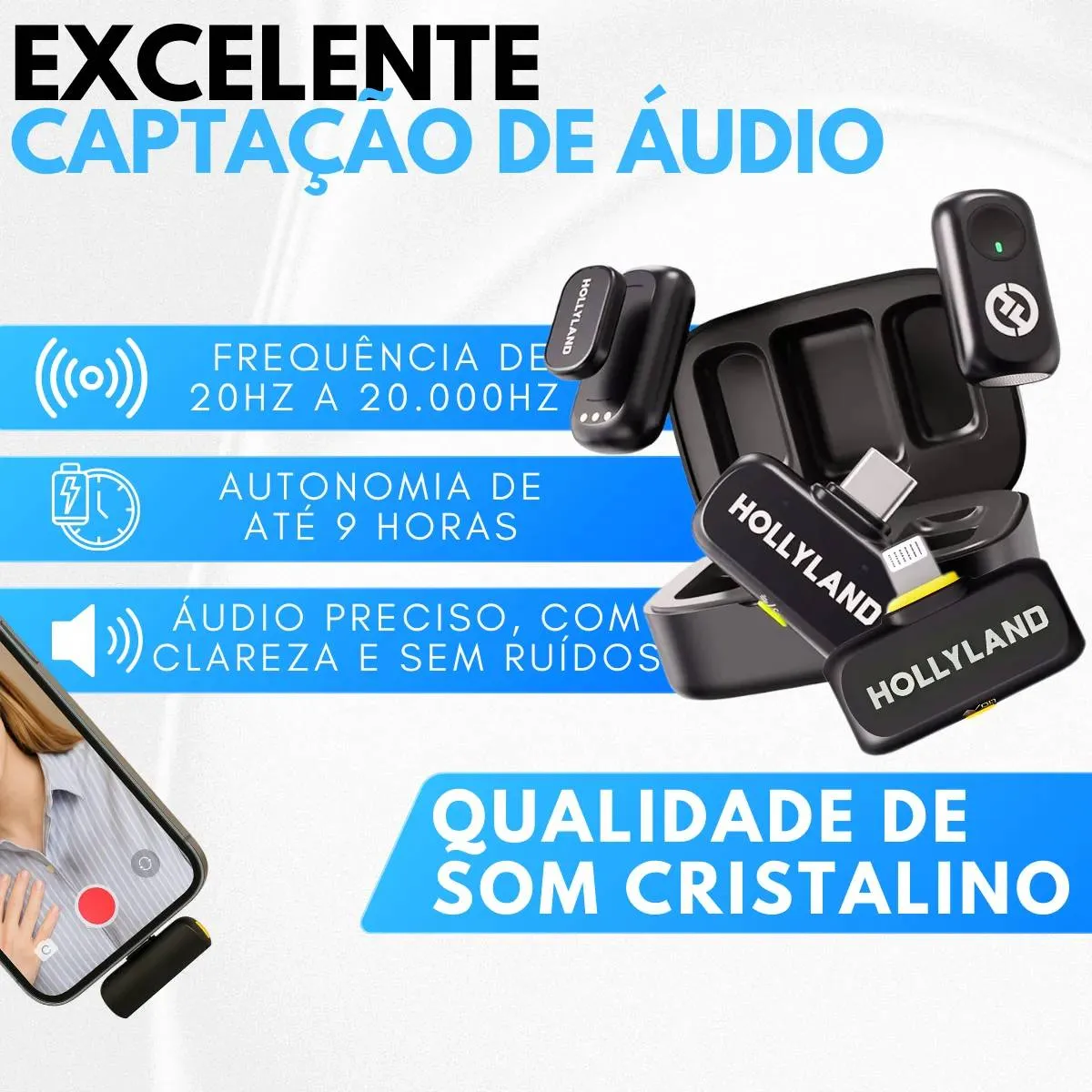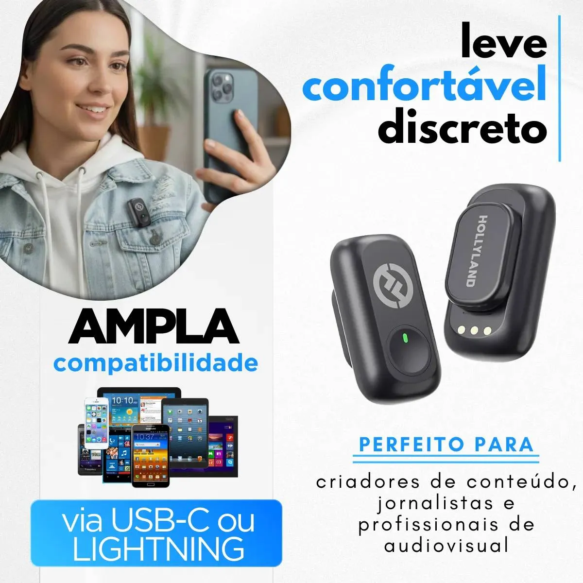 Projetado para criadores de smartphones, esse microfone sem fio ultracompacto oferece áudio com qualidade de estúdio de 48 kHz/24 bits e uma conexão plug-and-play simples. Capture diálogos nítidos e paisagens sonoras diferenciadas, de sussurros ASMR a vocais de concertos ao vivo, graças ao cancelamento inteligente de ruído de 3 níveis e ao controle de distorção SPL de 120 dB. Personalize seu som exclusivo com predefinições de equalização ajustáveis, efeitos de reverberação e ajuste de ganho de 6 níveis usando o aplicativo LarkSound. O mini microfone magnético (8 g/9 mm) se conecta discretamente a golas, chapéus ou superfícies ocultas, enquanto os receptores duplos IOS/USB-C garantem a compatibilidade com dispositivos iPhone e Android. Escolha entre versões com ou sem estojo de carregamento para até 54 horas de gravação contínua, ideal para vlogs de vários dias, cobertura de eventos ou filmagens de viagens. Microfone sem fio