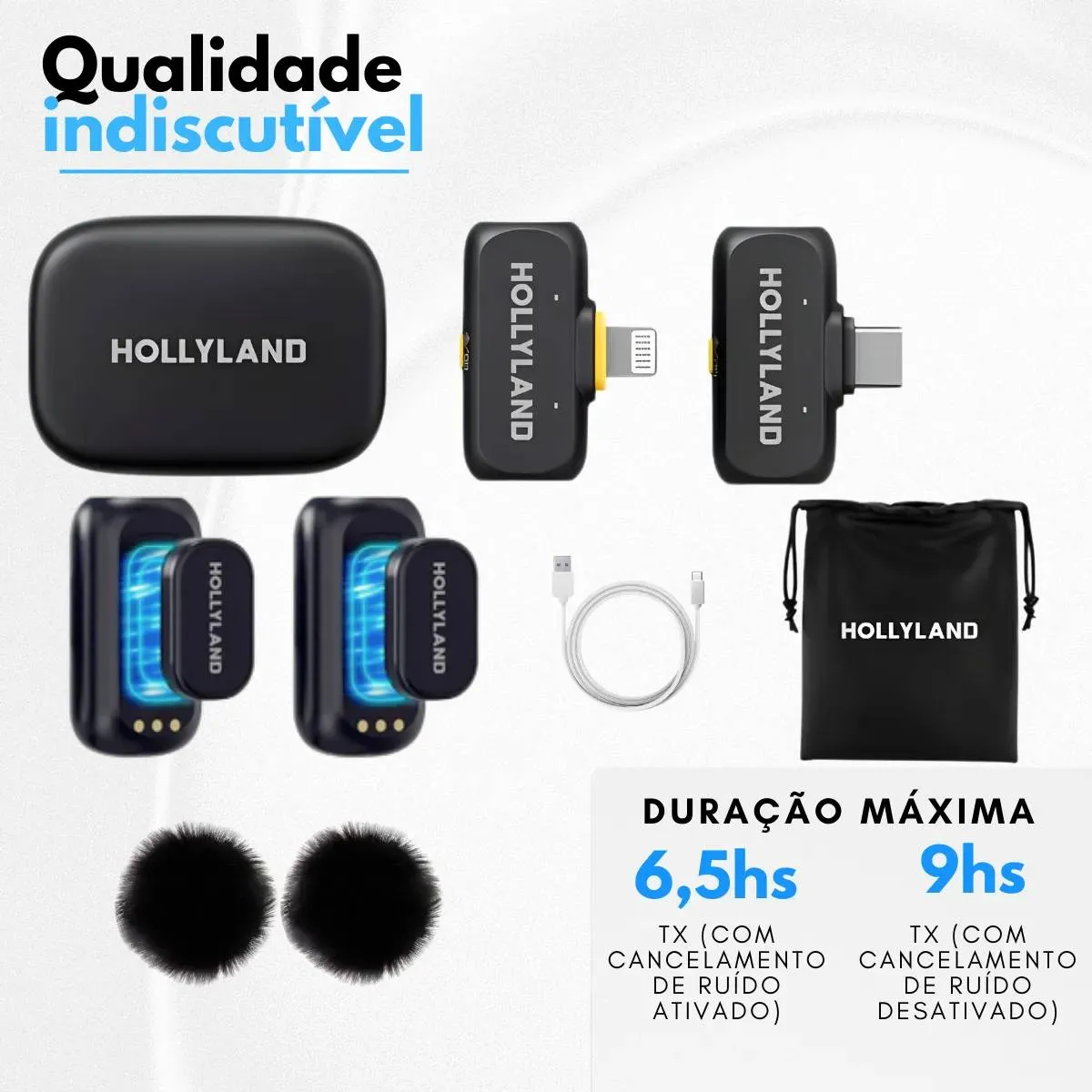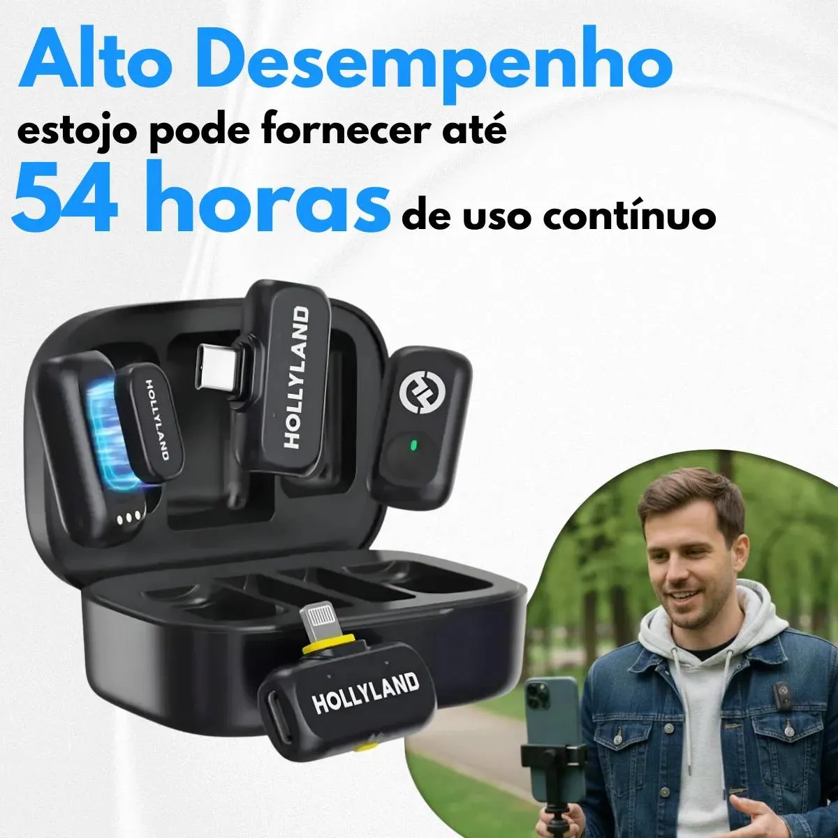 -Até 54 horas de duração da bateria: obtenha até 54 horas usando um transmissor (TX) alternadamente com o estojo de carregamento, ideal para longos dias de gravação sem se preocupar com a bateria.