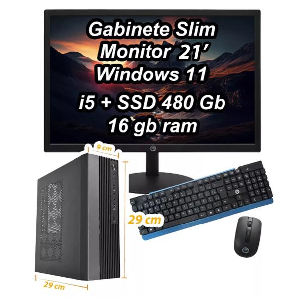 Mini Cpu Pc Desktop com Monitor 19 polegadas Intel Core I5 3a 16gb 480gb Win11 Pacote office