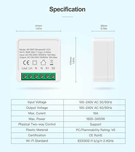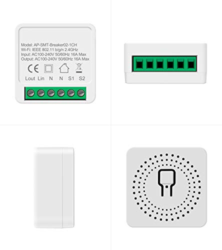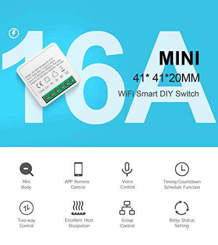 Mini Interruptor inteligente 16A wifi diy suporta 2 vias de controle, módulo de automação residencial inteligente, funciona com alexa google casa inteligente