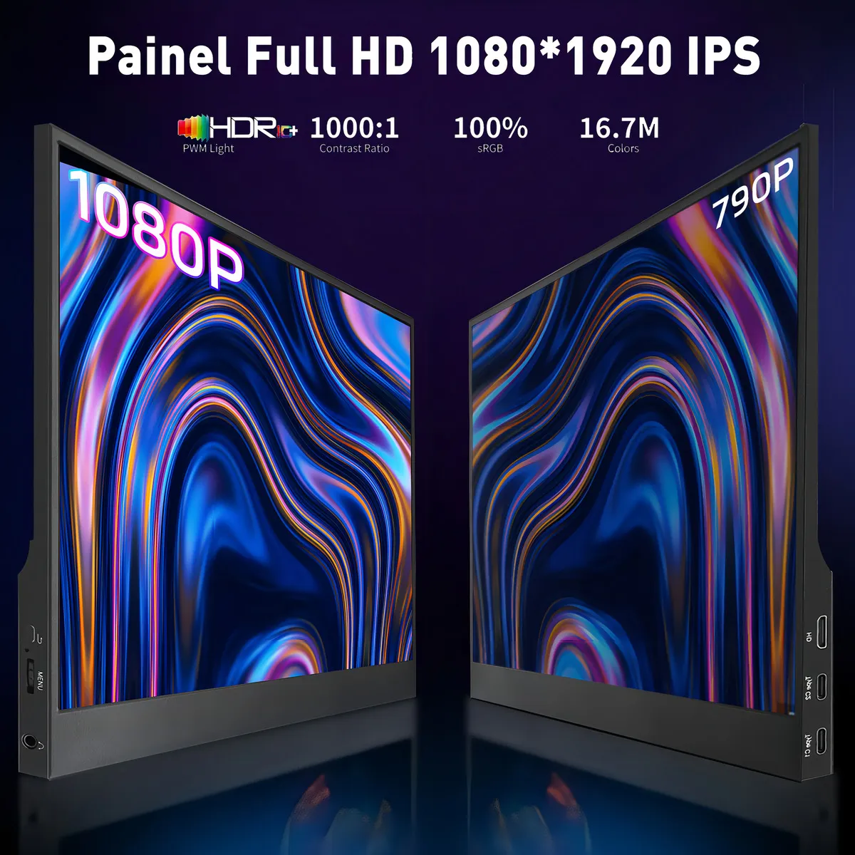 1080P FHD. A tela portátil ReHisk possui um painel IPS avançado de 15,6 polegadas, que vê tudo como deveria ser, com imagens realistas e cores vivas em um amplo ângulo de visão de 178°. A tecnologia AMD FreeSync elimina a interrupção da tela, enquanto a baixa luz azul otimiza com eficiência o conforto visual.