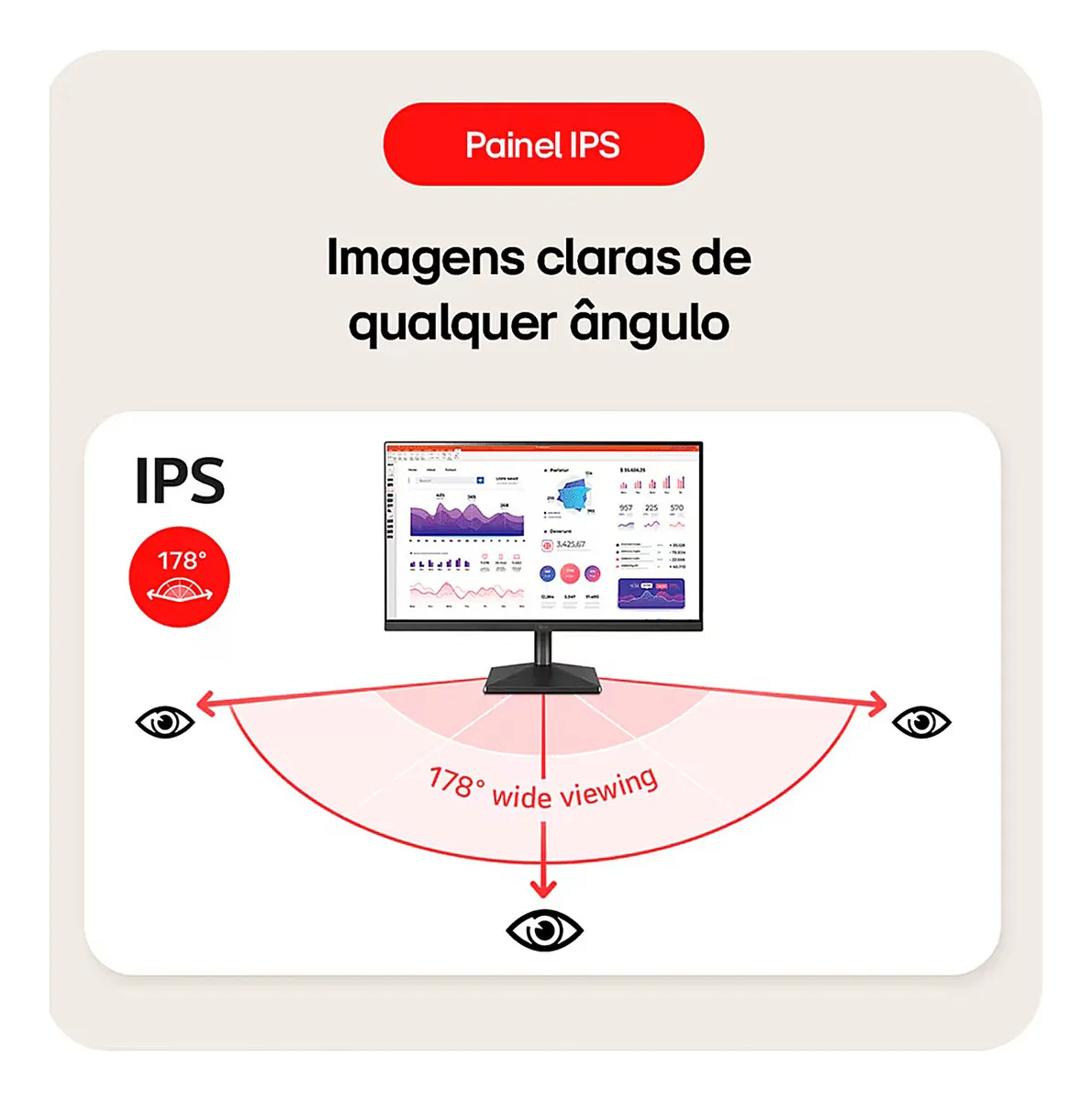 Painel IPS FullHD: o monitorPC Gamer LG 24MS500 oferece imagens de alta qualidade e cores precisas, com ângulos de visão de até 178°, ideal para planilhas, apresentações e jogos.