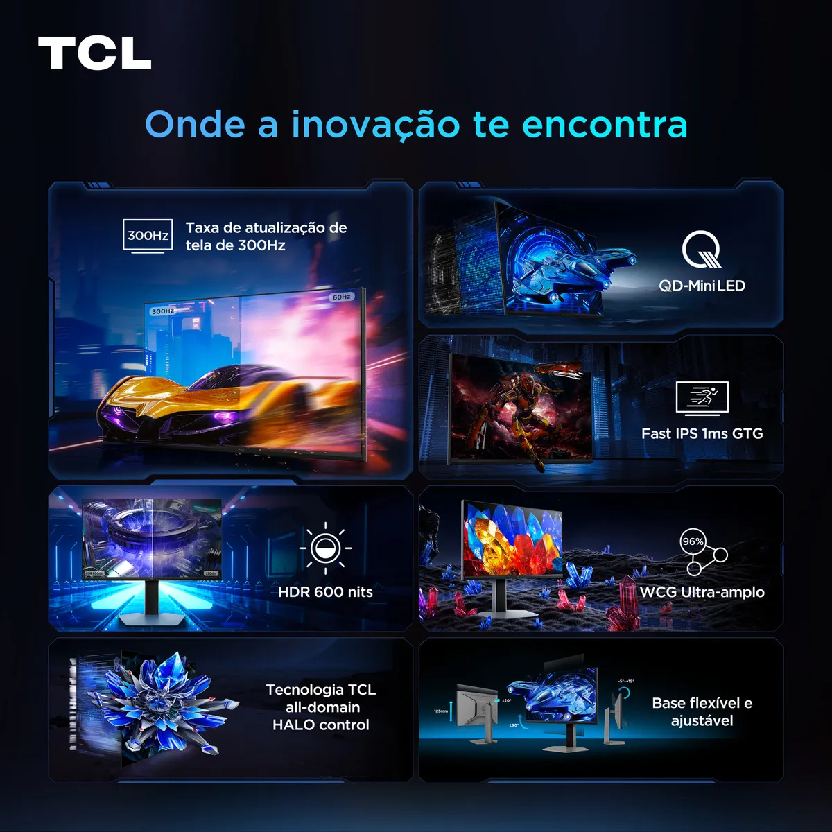 Monitor Gamer TCL 25 Polegadas QLED Mini LED Full HD G64 300Hz 1ms (GtG) Freesync HDR 600 nits 25G64