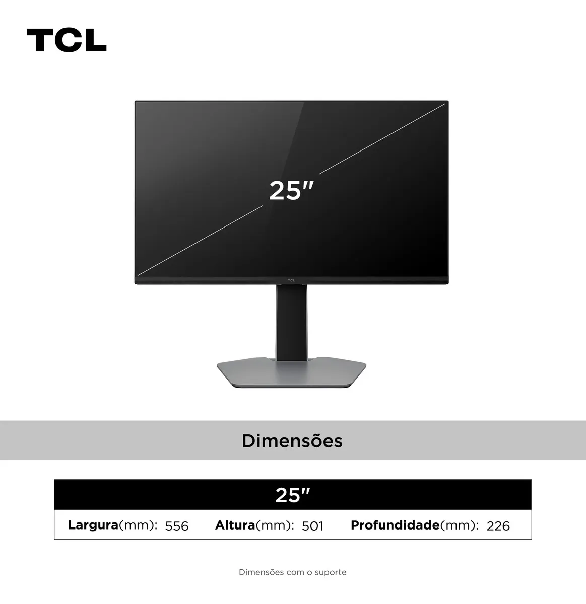 O Monitor TCL 25G64 combina qualidade de imagem com alto desempenho: tela QD Mini LED de 25", resolução Full HD e HDR600.