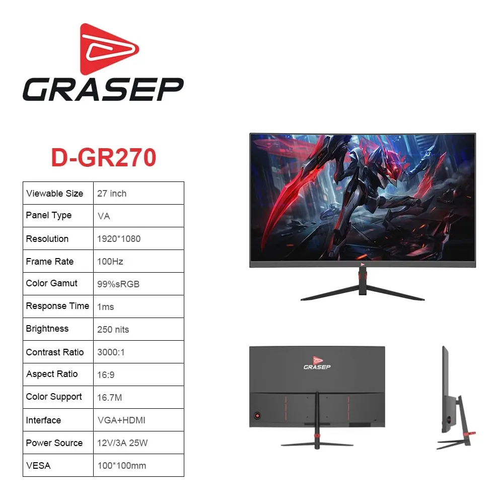 A tela curva de alta definição Full HD, combinada com a tecnologia TFT, garante imagens vibrantes e realistas, enquanto as entradas VGA e HDMI oferecem versatilidade para conectar diversos dispositivos. Este é o monitor ideal para gamers que buscam desempenho e qualidade visual excepcionais.