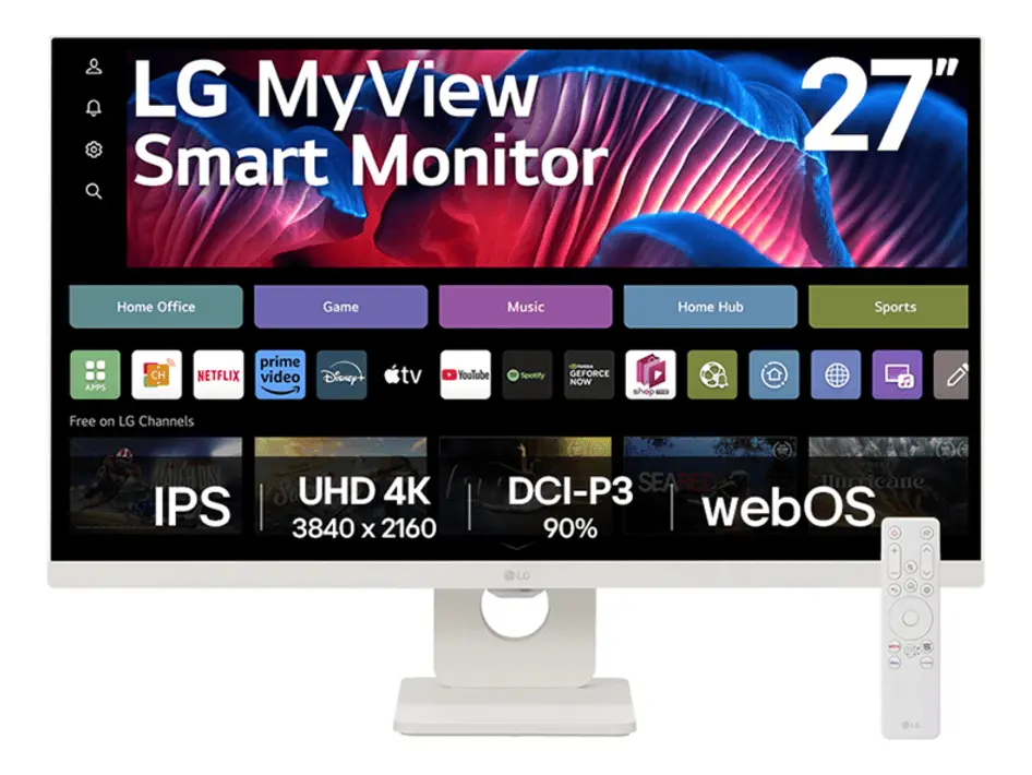 • Uma Tela, Infinitas Possibilidades: Trabalhe e se divirta com o Monitor LG MyView Smart 27SR73U-W. Com ele, além das tarefas do dia a dia, você assiste seus conteúdos favoritos de streaming (Netflix, Prime Video, Disney+, YouTube e