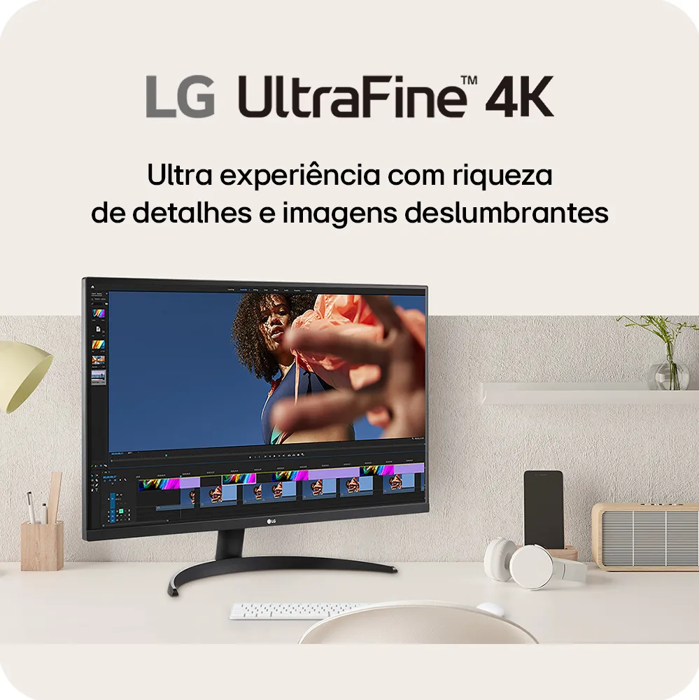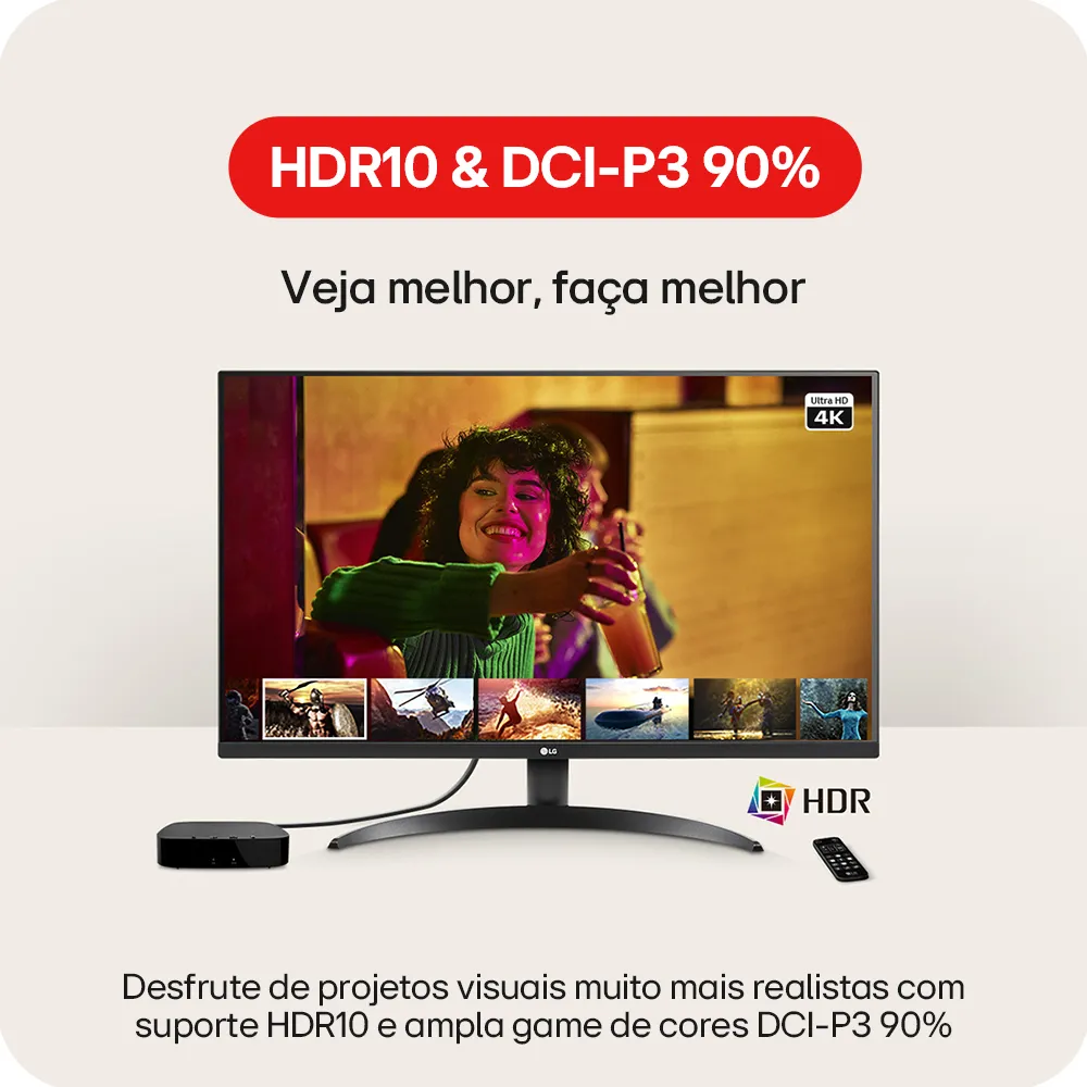 Experimente imagens surpreendentemente nítidas e cores vibrantes com o Monitor LG Ultra UHD 4K HDR 10, garantindo uma experiência visual impressionante ao editar imagens e vídeos, assistir conteúdos de streaming e jogar.