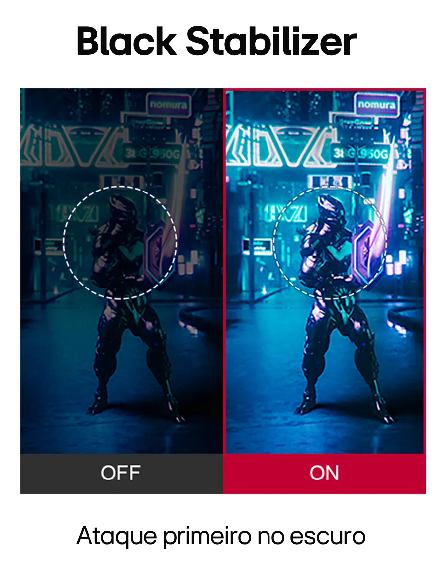 • Tecnologia e Precisão: Taxa de atualização de 165Hz para visualização rápida de quadros e resposta ágil aos oponentes, juntamente com tempo de resposta de 1ms (MBR) para imagens suaves e sem rastros.