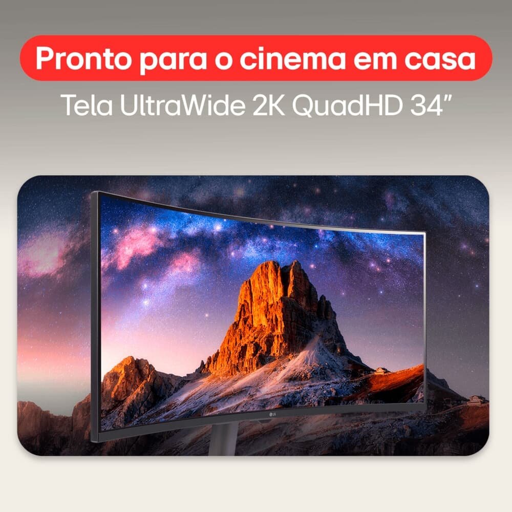 O display curvo WQuadHD 21:9 de 34 polegadas oferece uma resolução incrível de 3440 x 1440, proporcionando imagens nítidas e cores brilhantes. Com uma curvatura que amplia a imersão, você aproveita uma experiência visual diferenciada, perfeita para produtividade e entretenimento. Além disso, os ângulos de visão de 178 graus garantem uma qualidade impecável, não importa de onde você esteja olhando.