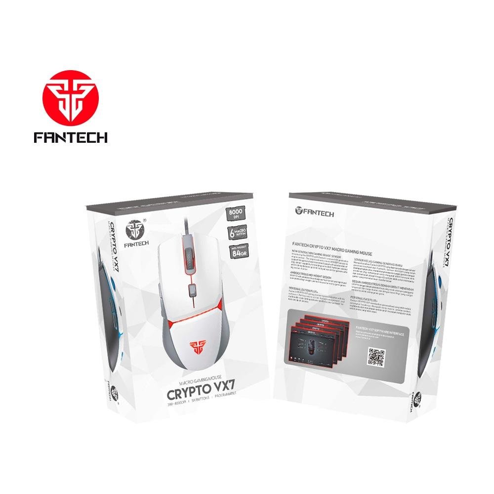 Mouse Gamer com Fio Fantech Crypto VX7, 8000 DPI 6 botões, Branco - Crypto VX7 W