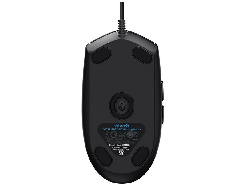 Mouse Gamer Logitech G203 LIGHTSYNC RGB, Efeito de Ondas de Cores, 6 Botões Programáveis e Até 8.000 DPI, Preto - 910-005793
