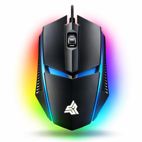 Mouse Gamer RGB com Fio USB 1200 DPI – Design Ergonômico Ambidestro para PC e Notebook – Ideal para Jogos e Uso Diário