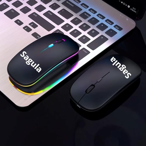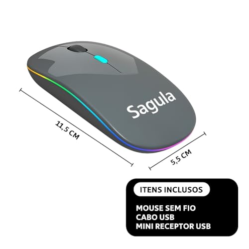 Mouse Sem Fio Recarregável Sagula com LED RGB Colorido – Ergonômico, Silencioso, 2.4G USB, Design Slim, para Notebook e PC – Compatível com Windows, Mac, Linux e Android (PRETO)