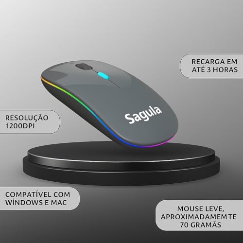 - Mouse Sem Fio Recarregável Sagula com LED RGB Colorido