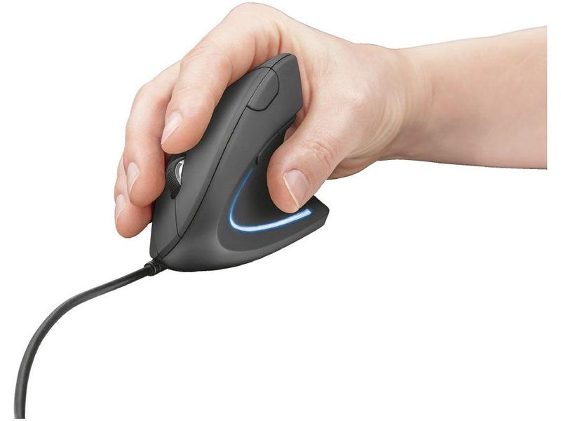 Mouse Trust Vertical Ergonômico Verto, LED Azul, 6 Botões - 22885