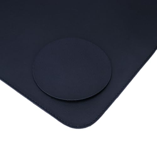 MousePad em Couro Ecologico 90x40cm + Porta-Copos -– Desk Pad Antiderrapante para Escritório, Home Office, Estudo – Tapete de Mesa Resistente à Água (Azul)
