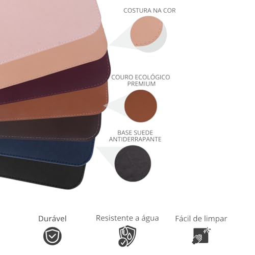 Eleve seu espaço de trabalho com este elegante Desk Pad Mouse Pad Premium em couro sintético. Com 2mm de espessura, oferece proteção superior e conforto excepcional para seu setup. A superfície lisa proporciona deslizamento perfeito do mouse e estabilidade para o teclado, enquanto a base em camurça aveludada mantém o pad firmemente no lugar. Disponível em cores sofisticadas como preto, caramelo, café, nude, bordô e rosa, combina perfeitamente com qualquer ambiente. A superfície impermeável facilita a limpeza com apenas um pano úmido e detergente. Produzido artesanalmente com acabamento premium, este desk pad mantém-se sempre plano, sem dobras ou deformações. Ideal para home office, escritório ou setup gamer, oferece uma experiência superior com toque agradável e precisão nos movimentos. A combinação perfeita de funcionalidade e estilo para sua mesa de trabalho.
