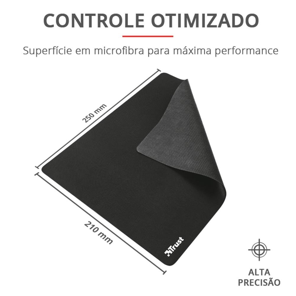Mousepad Trust Médio (250x210mm), Superfície Otimizada, Antiderrapante, Preto - 24193