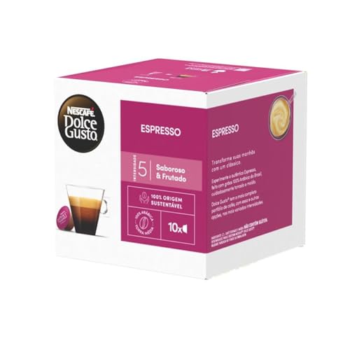 O Café em Cápsula NESCAFÉ DOLCE GUSTO Espresso 10 Cápsulas oferece uma experiência autêntica de espresso, com sabor delicado e frutado, acompanhado de uma espuma aveludada. Feito com grãos 100% Arábica premium do Brasil, este espresso proporciona uma bebida encorpada e aromática, ideal para os apreciadores de café que buscam qualidade e sabor em cada xícara.