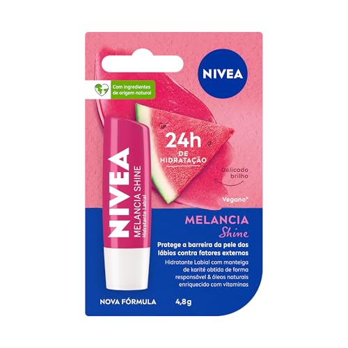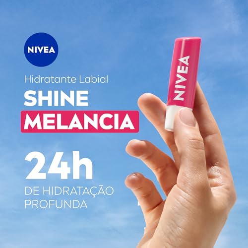 NIVEA Hidratante Labial Melancia Shine 4,8g, Hidratação Intensa 24h, Cor Suave, Brilho Delicado, Cuidado Diário, Manteiga de Karité