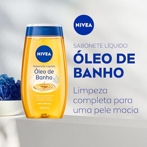 NIVEA Sabonete Líquido Óleo de Banho 200ml, Limpeza Corporal, Pele Macia, 55% Óleos Naturais, Sensação Hidratante
