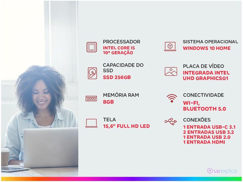 Aproveite o melhor da tecnologia e execute todas as tarefas com o máximo de velocidade e eficiência com o Notebook Acer Aspire 5 A515-54-57EN. Projetado para entregar um desempenho surpreendente, ele traz uma configuração poderosa que inclui processador Intel Core i5 da 10a geração e 8GB de memória RAM com possibilidade de expansão para até 20GB. O armazenamento com SSD de 256GB tem espaço de sobra para guardar todos os seus arquivos e programas, garantindo alta velocidade de leitura e gravação. Surpreenda-se com o design elegante e ultrafino que conta com textura de alumínio escovado, teclado ergonômico e tela LED antirreflexo de 15,6" com resolução Full HD que traz imagens e cores incríveis. Você também poderá aproveitar outros recursos como as diversas conexões USB, entrada HDMI, bateria de longa duração e conectividades Wi-Fi e Bluetooth. O produto ainda vem equipado com sistema operacional Windows 10 Home para trazer mais segurança e conforto durante o uso.