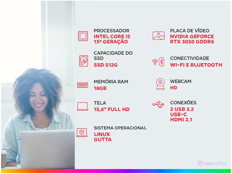 O notebook gamer Acer Nitro V15 ANV15-51-582R é perfeito para quem busca um equipamento potente e com ótimo custo-benefício. O sistema operacional é o Linux Gutta. Ele conta com processador Intel Core i5 13420H de 13ª geração, 512GB de armazenamento SSD, 16GB de memória RAM, tela LED de 15,6" com resolução Full HD (1920x1080) e frequência de 144Hz, painel IPS e placa de vídeo dedicada NVIDIA GeForce RTX 3050 com 6GB de memória.