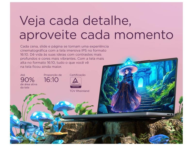 Desfrute de uma experiência visual imersiva na tela IPS de 15,3" com resolução WUXGA (1920x1200). As cores são mais vivas e os detalhes mais nítidos, ideal para assistir a filmes, editar fotos ou trabalhar com planilhas. Tudo isso em um design elegante e resistente, com a certificação de padrão militar de confiabilidade MIL-STD-810H, que atesta sua durabilidade contra condições adversas do dia a dia.