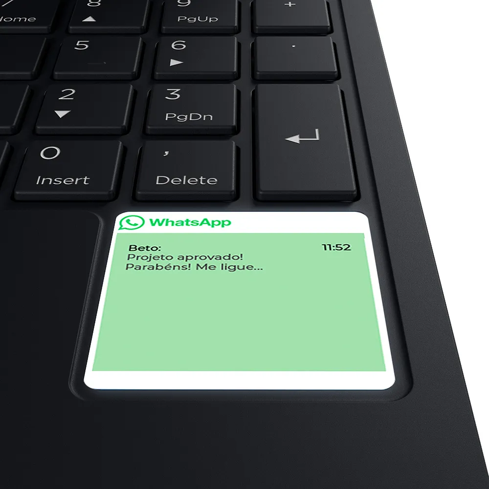 • MiniTela integrada: Visualize notificações do WhatsApp, lembretes, status do dispositivo, previsão do tempo e imagens/GIFs sem interromper seu trabalho;