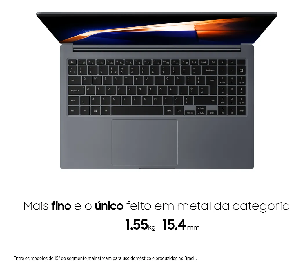 Notebook Samsung Galaxy Book4 Intel® Core™ i5-1335U (1.3 Ghz, até 4.6GHz, 12 MB L3 Cache), Windows 11 Home, 8GB, 512GB SSD, Iris Xe, 15.6'' Full HD LED, 1.55kg
