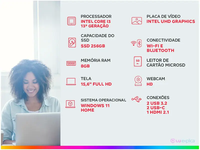 Equipado com processador Intel Core i3 1315U de 13ª geração e 8GB de memória RAM, oferece uma experiência fluida e eficiente em multitarefa e aplicações exigentes.