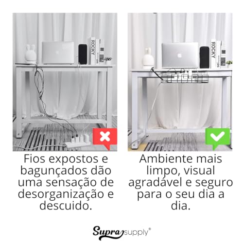 Organizador de Cabos e Fios de Metal Para Organização de Escritório Mesa Por Parafuso Em Grade Suporte Ideal Para Home Office Setup Esconder Passa Fios Calha Supra Supply (Preto)
