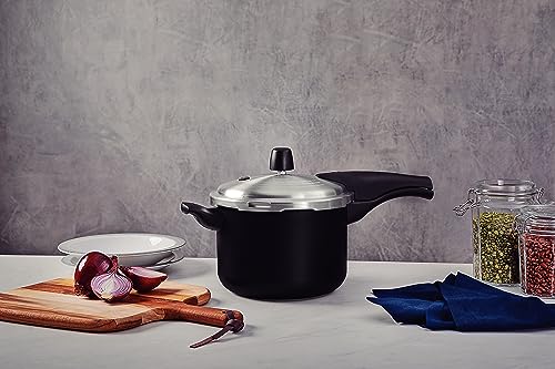 Com a panela de pressão Tramontina Vancouver Effect em alumínio com revestimento interno e externo em antiaderente Starflon Max preto 20 centímetros de diâmetro 4,5 litros você ganha um aliado de alta qualidade para o preparo das suas refeições. Com ela, suas receitas serão um sucesso absoluto e ficam prontas com maior rapidez. Com tampa de alumínio com acabamento externo polido e interno satinado, ela proporciona um encaixe perfeito e mantém a pressão ideal durante todo o preparo das refeições. Para garantir sua segurança, a panela conta com alças e cabos superiores e inferiores em baquelite antitérmico, oferecendo assim, maior conforto e estabilidade ao manuseá-la.Escolha as panelas de pressão Tramontina Vancouver e tenha um item que se adapta ao seu estilo de vida na cozinha e eleva suas habilidades culinárias!