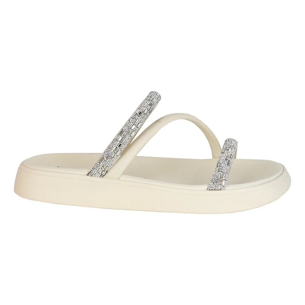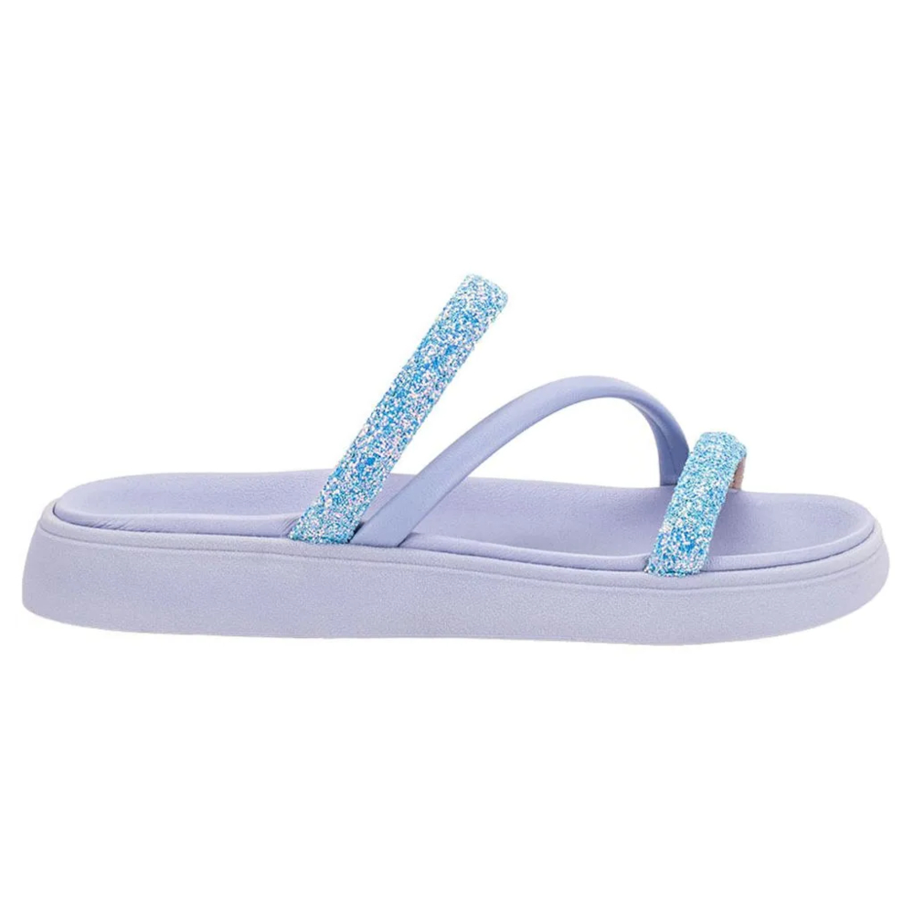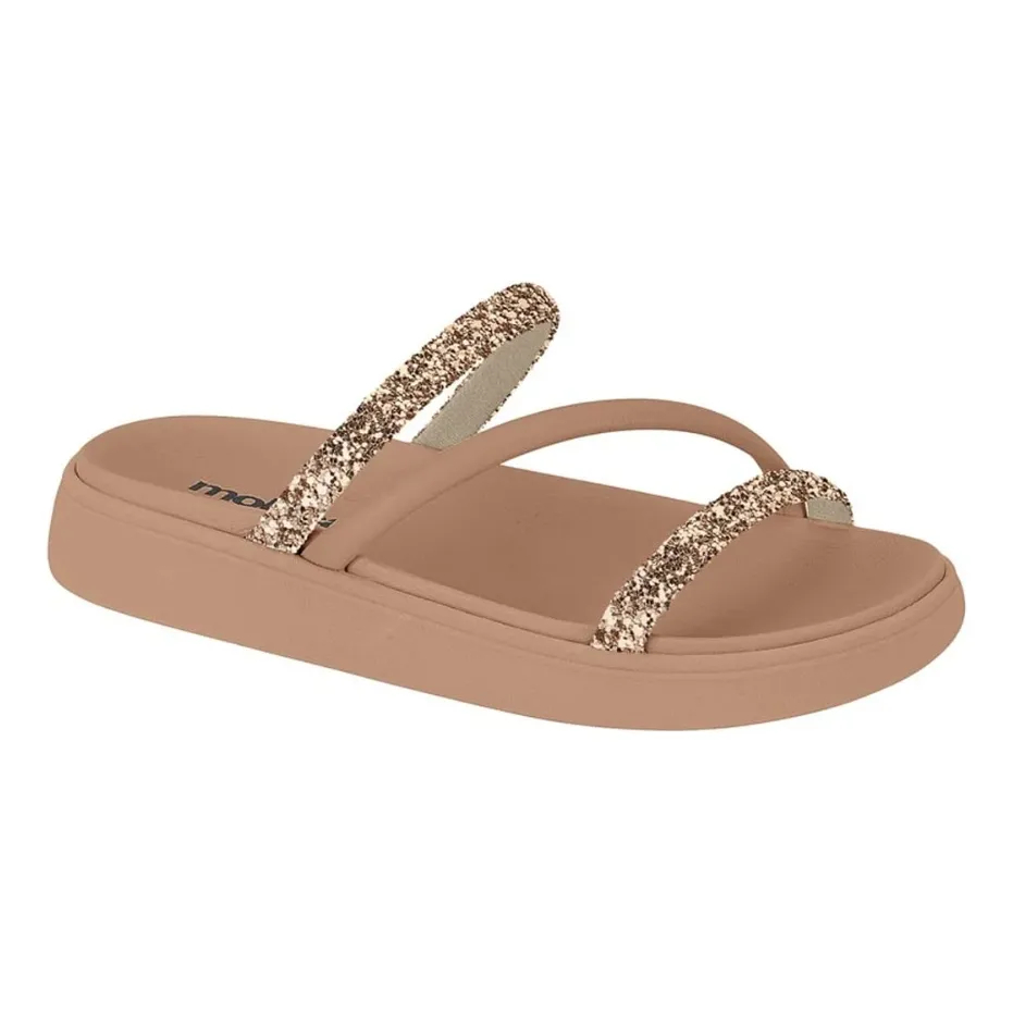 Papete Sandália Feminina Chinelo Moleca Com Tiras de Brilho Strass Original