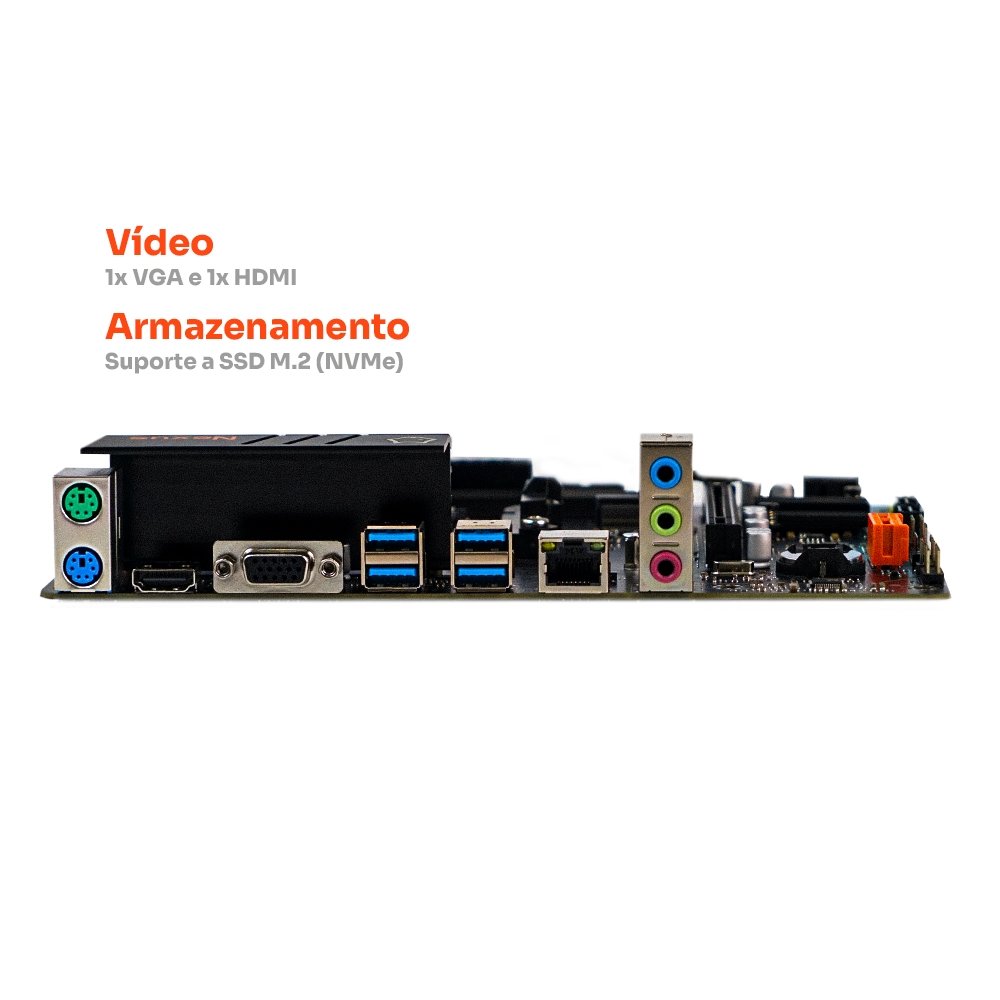A Placa-Mãe Husky Nexus A520 tem tudo que você precisa: um slot M.2 para SSDs NVMe ultra rápidos, saídas de vídeo VGA e HDMI para o seu monitor e conectores de energia e áudio padrão. Com o seu tamanho compacto de 180 x 216 mm, ela é ideal para gabinetes menores sem sacrificar a funcionalidade.