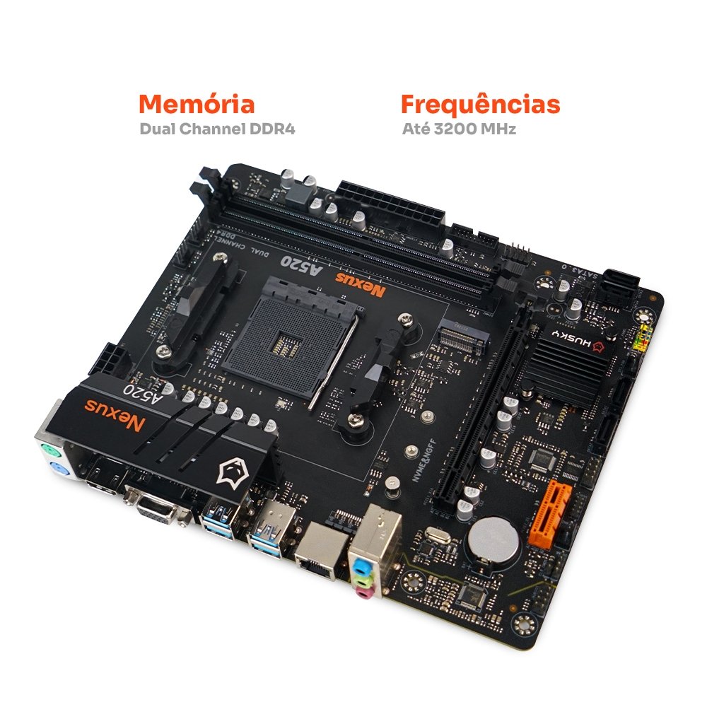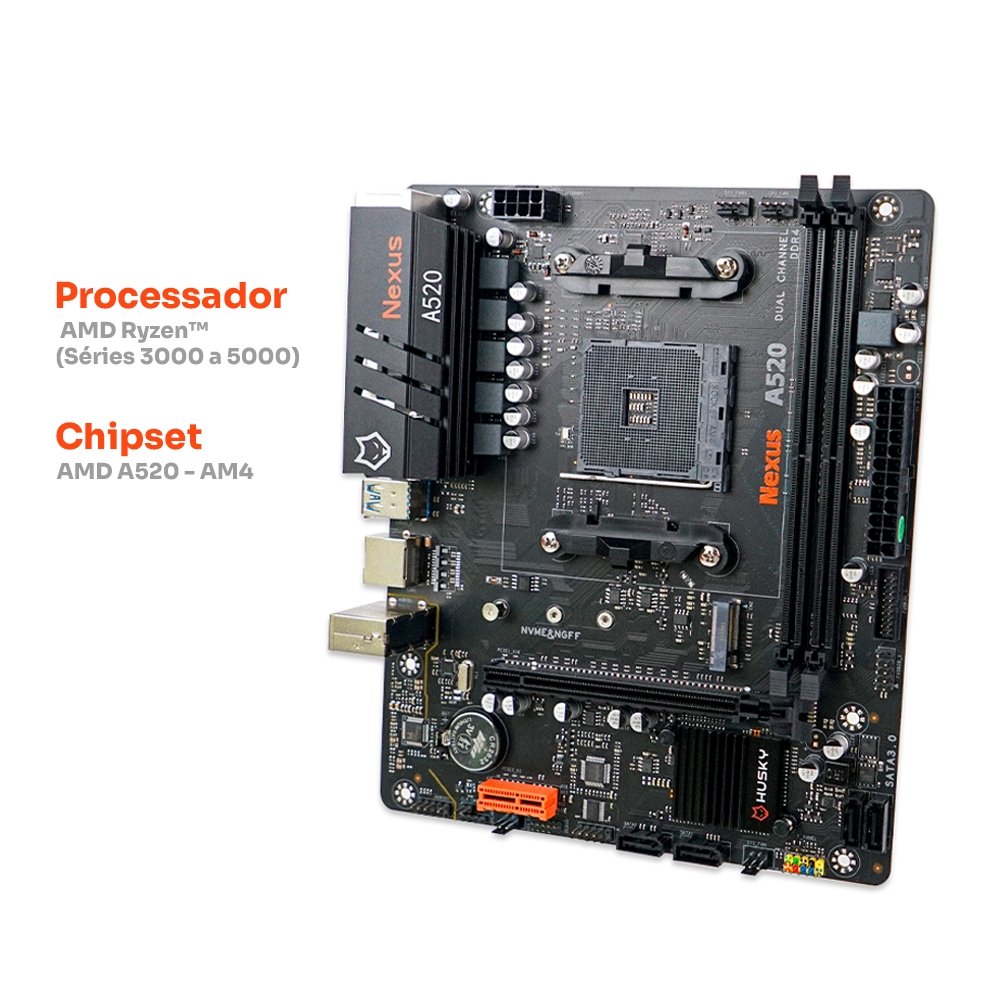 Placa-Mãe Husky Nexus A520, M.2 NVMe, DDR4 3200MHz, Ryzen 5000/4000/3000, Micro-ATX, 64GB Dual Channel - HPM520