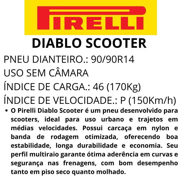 Pneu Moto 90 90 R14 Diablo Scooter Dianteiro TL 46P Pirelli