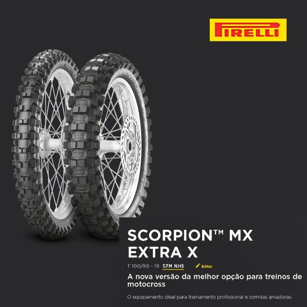 Pneu traseiro 100x90-19 scorpion mx extra x (57m) tt pirelli