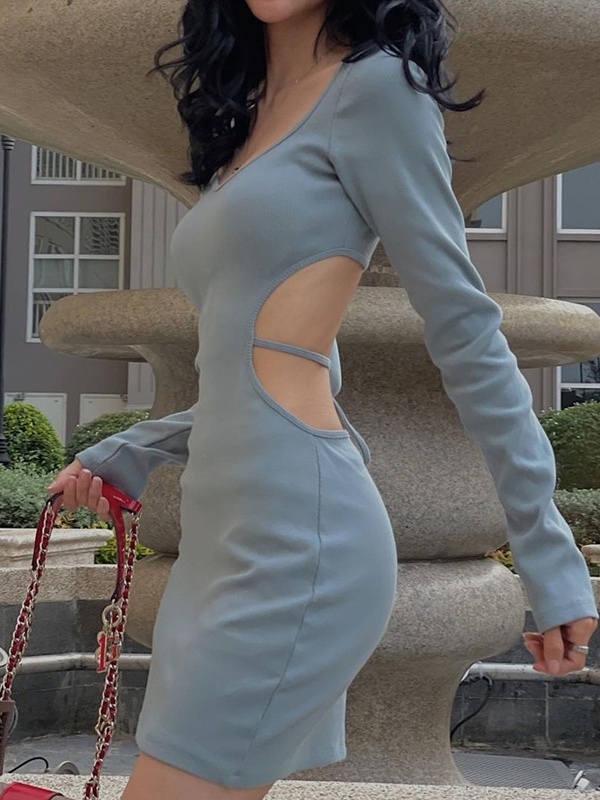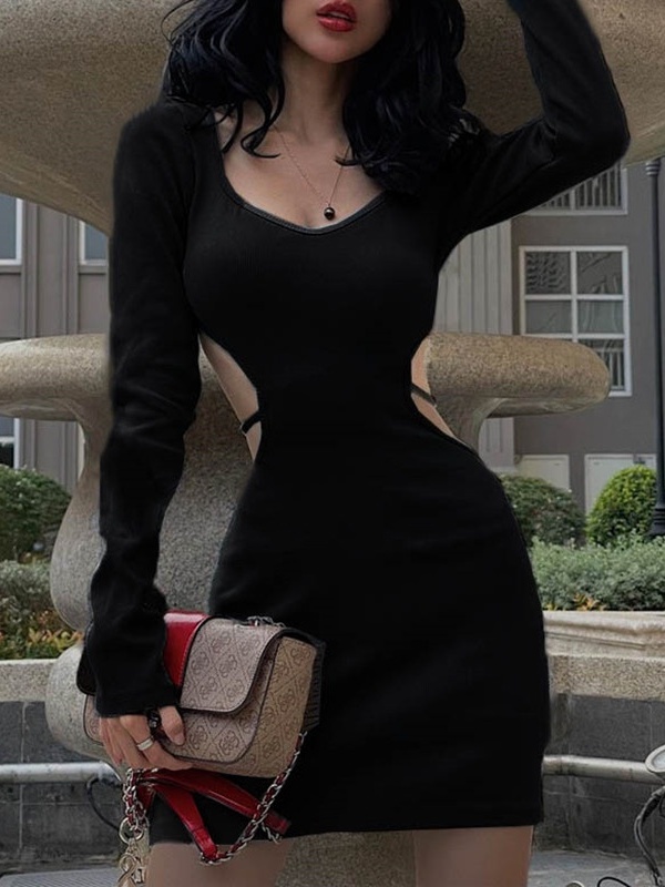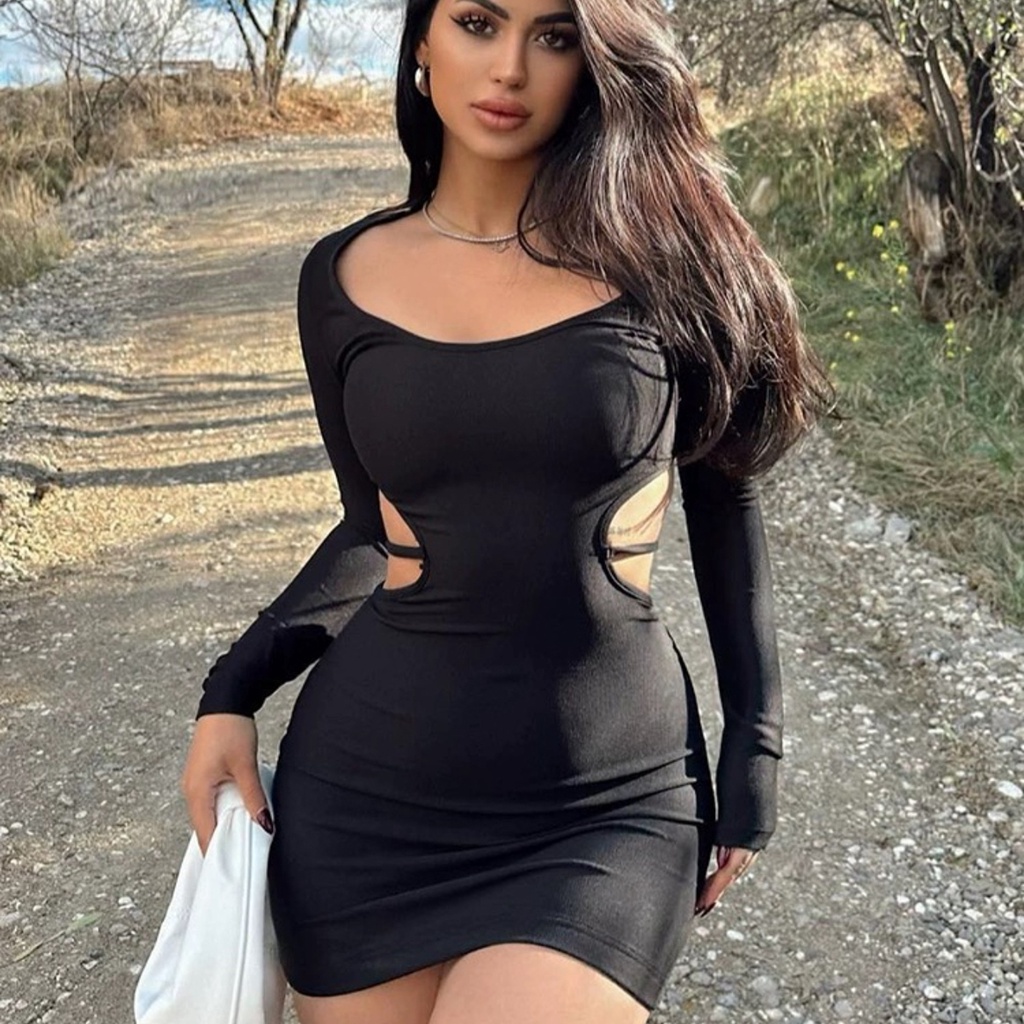 【Premium】Vestido Curto Manga Comprida com Abertura Costas 7531