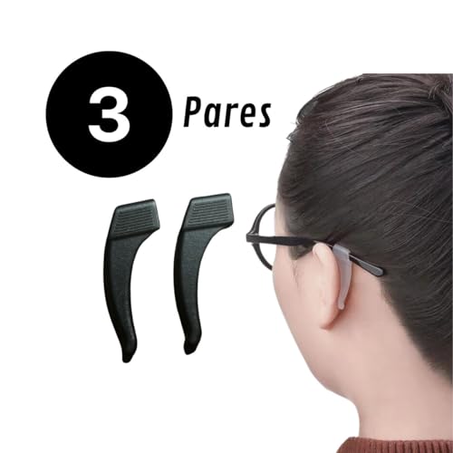 Prendedor de óculos gancho de orelha 3 Pares Suporte acessórios segura óculos antideslizante trava (Preto)
