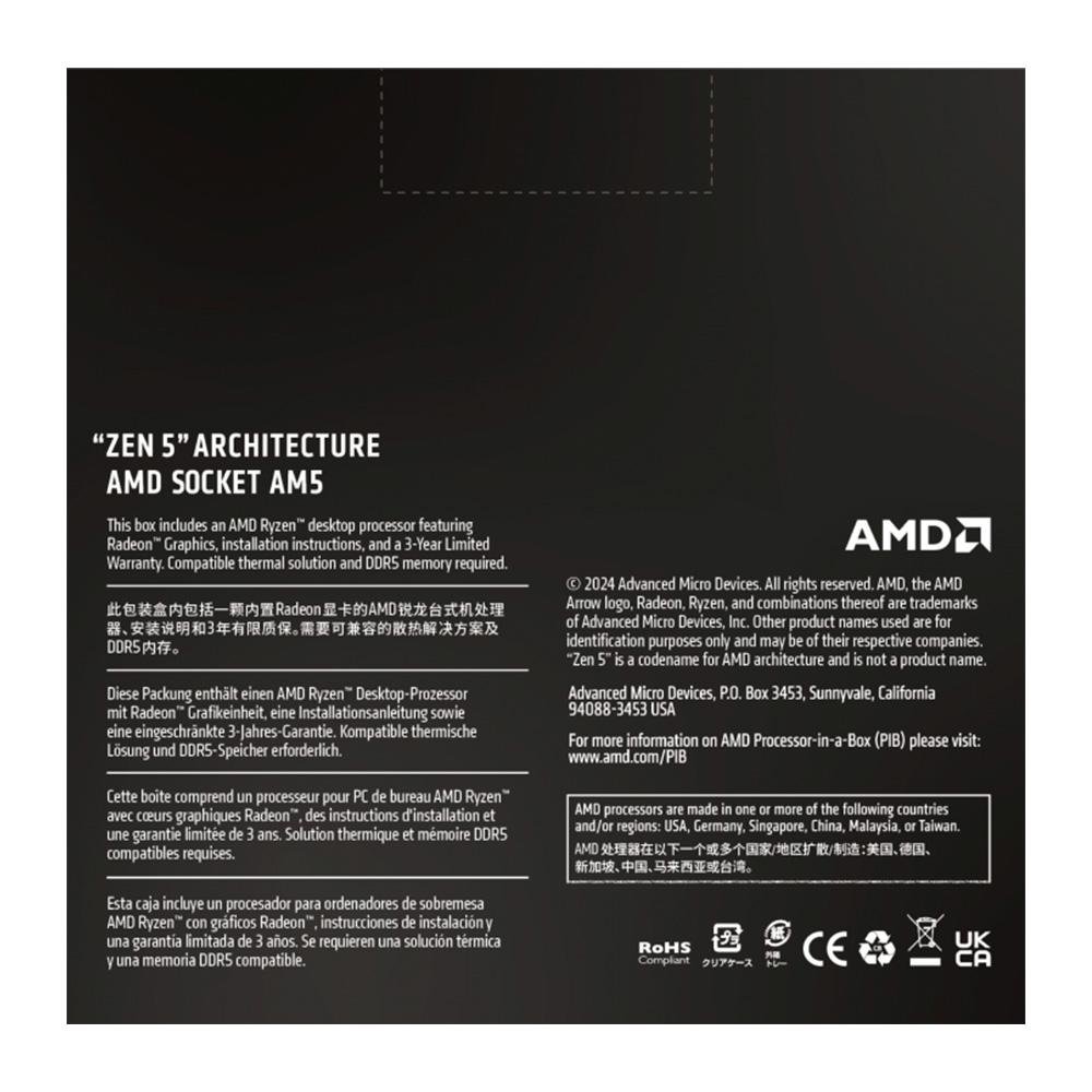Processador AMD Ryzen 7 9700X, 3.8 GHz (5.5 GHz), Cache 32 MB, 8 Núcleos, 16 Threads, AM5 - 100-100001404WOF