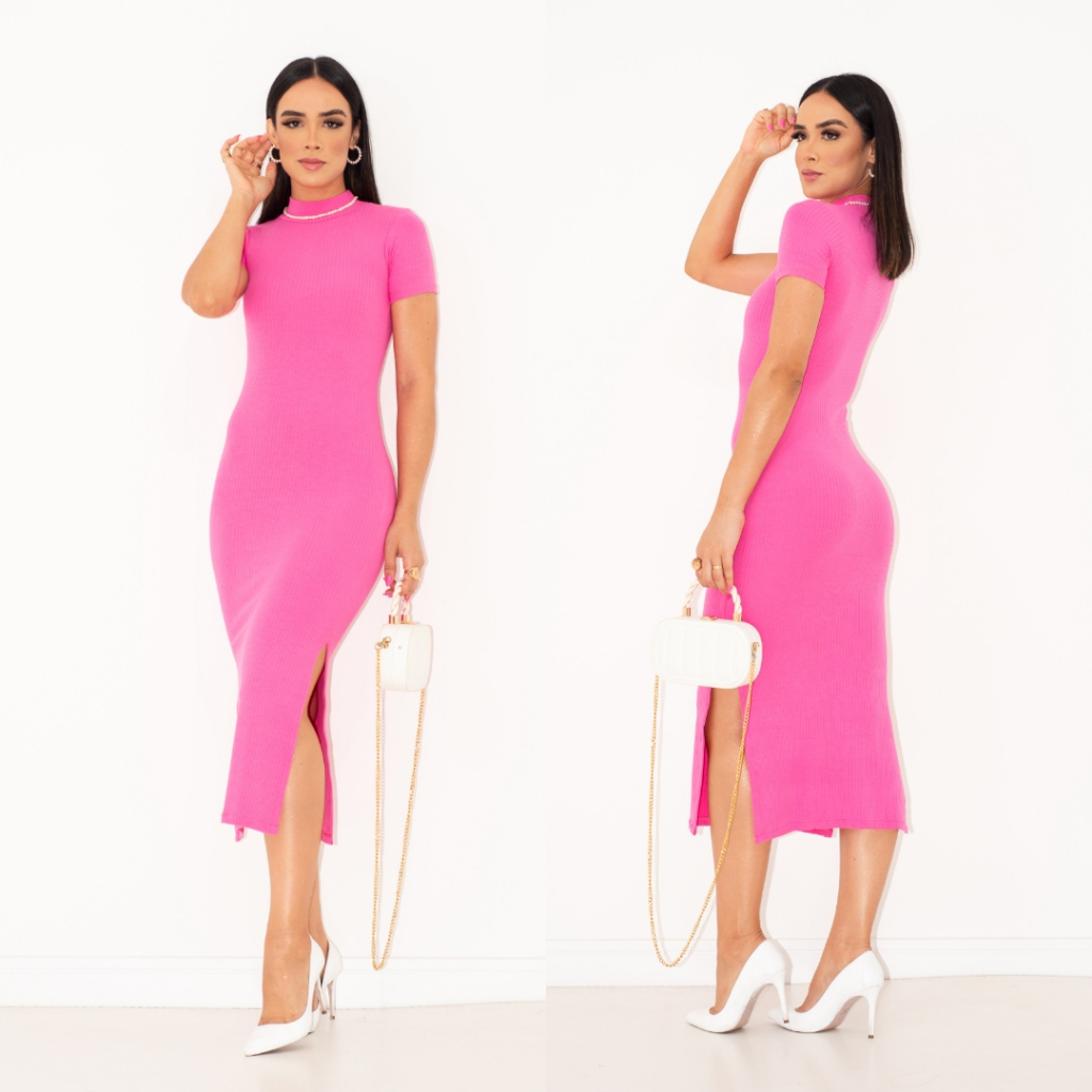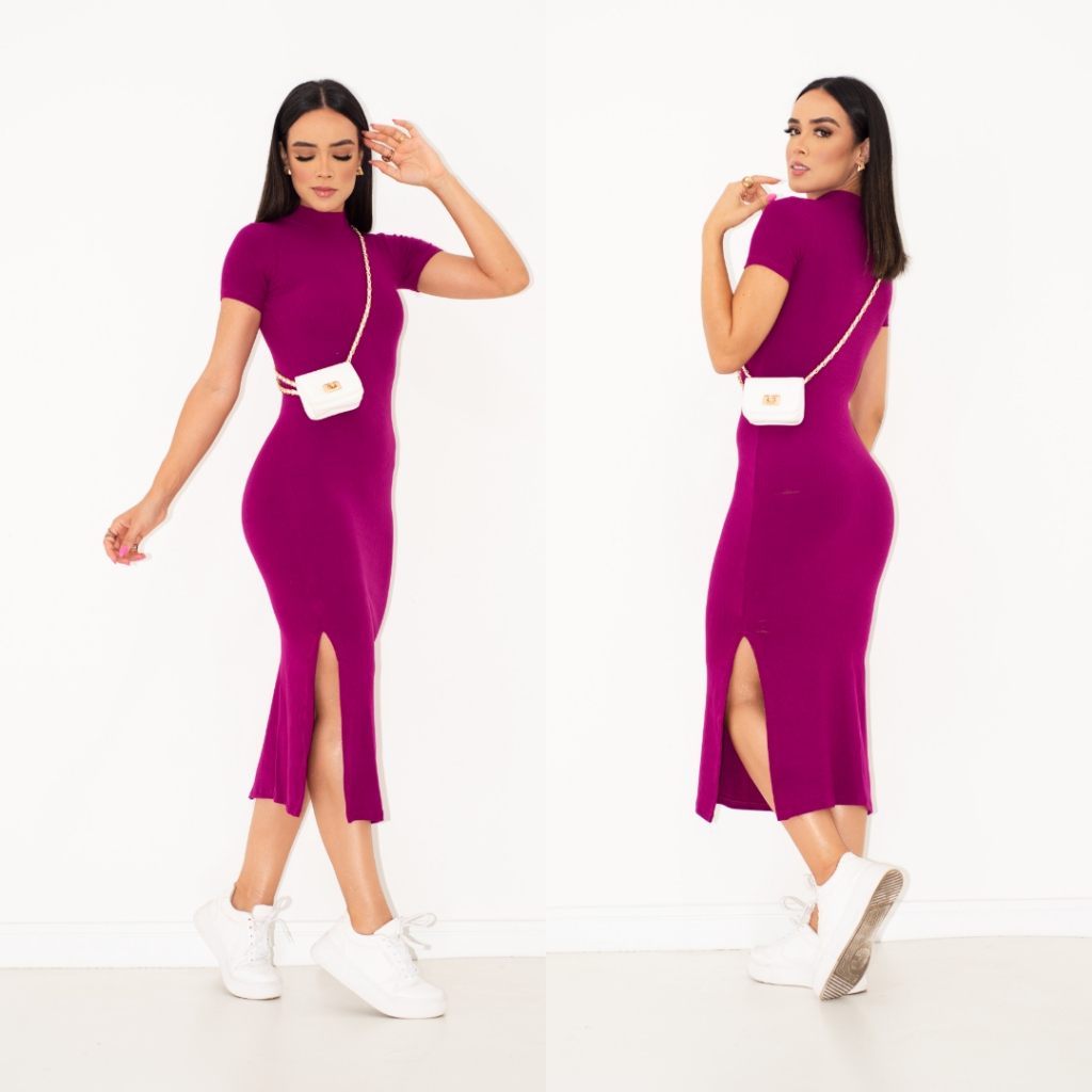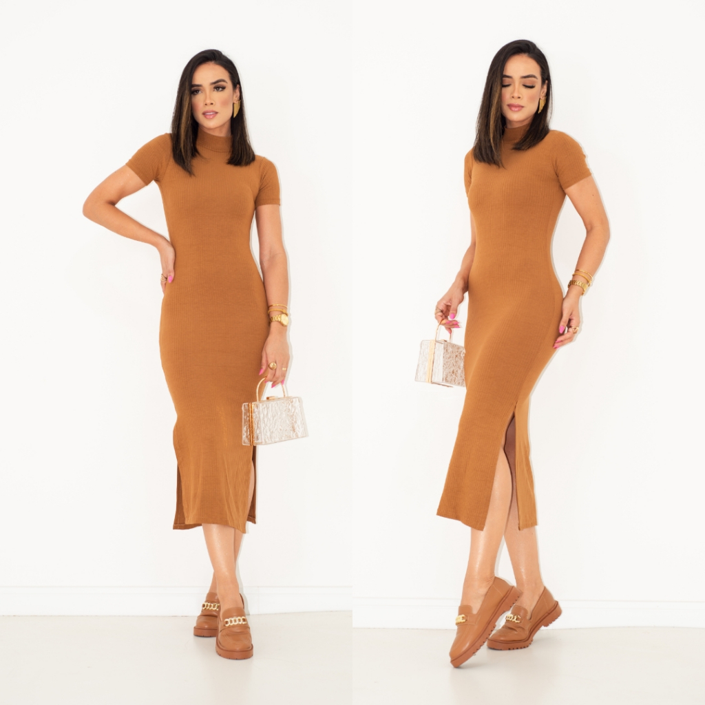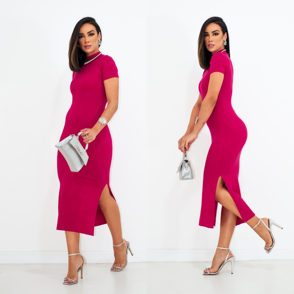 O Vestido Midi Max foi pensado para valorizar a silhueta, trazendo um visual moderno e poderoso com sua gola alta, manguinhas delicadas e uma fenda elegante, ideal para ocasiões especiais ou para arrasar no dia a dia.