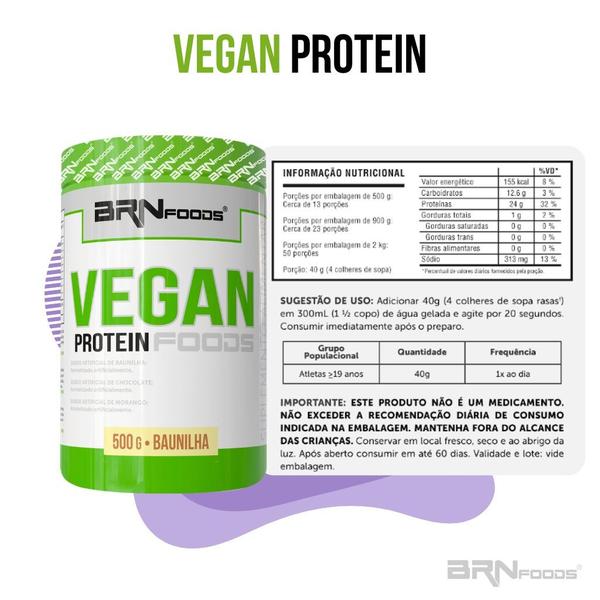- MarcaBRN FoodsModeloProteína VeganaPeso do Produto500gPrazo de Garantia1 mêsSaborBaunilhaTipo de DietaVegano