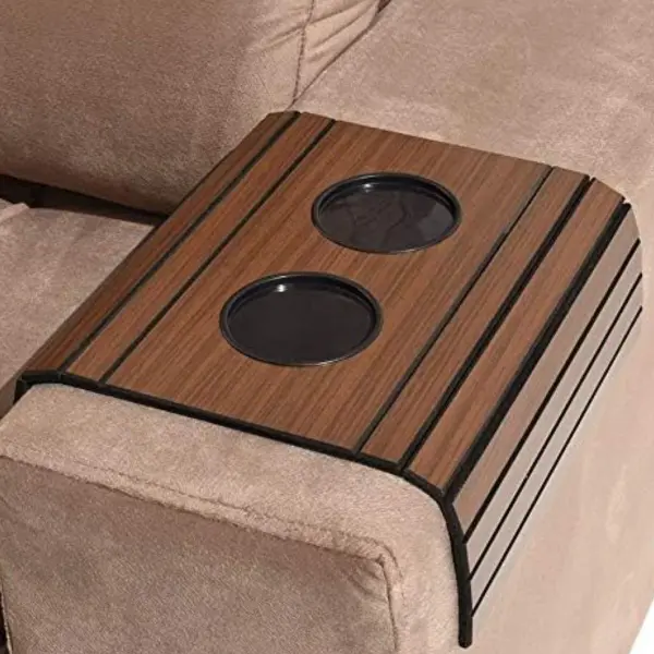 A Esteira Bandeja Flexível com Porta Copos é o acessório ideal para o seu sofá, proporcionando praticidade e elegância. Confeccionada em MDF resistente e revestimento adesivado, adapta-se a qualquer largura de braço, oferecendo suporte seguro para copos, controles remotos, e outros objetos enquanto você relaxa assistindo TV.