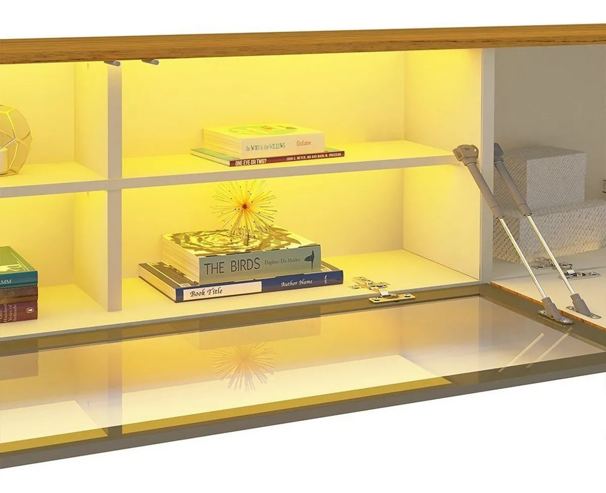 Estante para TV até 85 Polegadas 293cm com Porta Reflecta LED 100% MDF Luminare Off White/Naturale