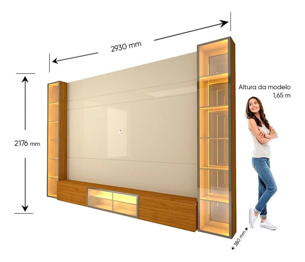 As torres, com espelhos no fundo, criam um encantador efeito de profundidade infinita, e a iluminação em LED com 120 pontos em tom quente adiciona sofisticação e aconchego ao ambiente. Disponível em versões com duas torres, uma torre, sem torres ou apenas o painel, é a escolha ideal para renovar sua sala!