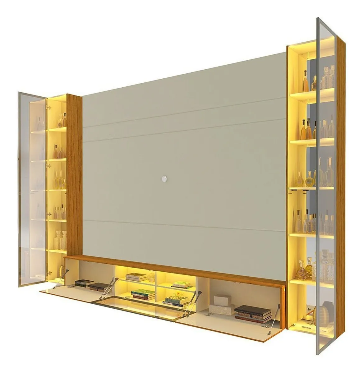 O Home Luminare é ideal para quem valoriza estilo e funcionalidade, acomodando TVs de até 85" e trazendo a modernidade das portas em vidro reflecta com moldura de alumínio. Com a tecnologia 'Push to Open', basta um simples toque para abrir, enquanto as dobradiças com amortecedor garantem um fechamento suave e silencioso.
