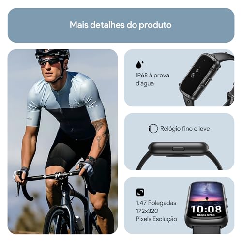 Relógio Inteligente Tranya ES11 Monitoramento Esportivo, 1.47“ Tela HD Touch, IP68 à Prova d‘Água, Bateria de 5-7 Dias, Notificações, Smartwatch